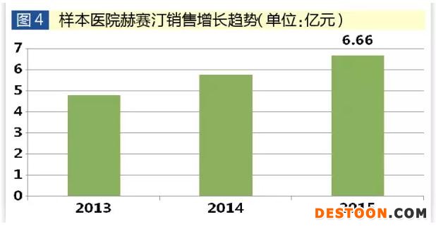 在國(guó)內(nèi),目前僅有赫賽汀一個(gè)針對(duì)HER2陽(yáng)性的靶向藥物。根據(jù)樣本醫(yī)院數(shù)據(jù)庫(kù),赫賽汀在單抗類(lèi)藥物銷(xiāo)售額僅次于美羅華,2015年樣本醫(yī)院銷(xiāo)售額該藥銷(xiāo)售額為6.66億元,同比增長(zhǎng)15.4%。