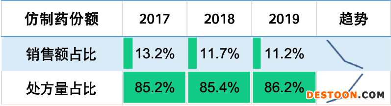 醫(yī)保局在通過(guò)一致性評(píng)價(jià)基礎(chǔ)上,按低價(jià)強(qiáng)制進(jìn)行替代,相對(duì)理論依據(jù)充分,也符合歐美發(fā)達(dá)國(guó)家藥品使用慣例。比如美國(guó)市場(chǎng),仿制藥處方就占到總量的近 9 成,銷售額只有 1 成,節(jié)省了大量的醫(yī)保開支。