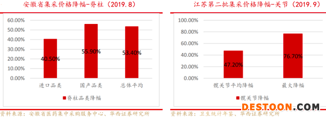 一個(gè)是 2019 年 7 月份,安徽、江蘇針對(duì)骨科植入(脊柱)類、眼科(人工晶體)類、冠脈支架等品種開展集中帶量采購(gòu),也被官方認(rèn)證為器械集采改革的破冰。所以安徽、江蘇這兩個(gè)省份選擇品類尤其值得重視。